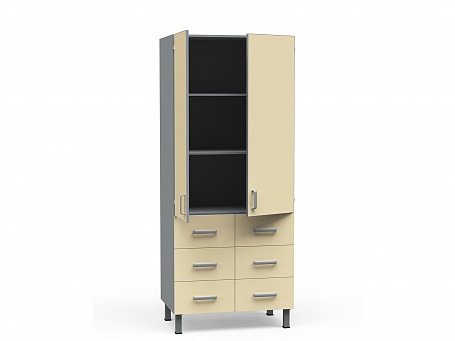 Шкаф комбинированный двухстворчатый с 2 распашными дверками и 6 выдвижными ящиками